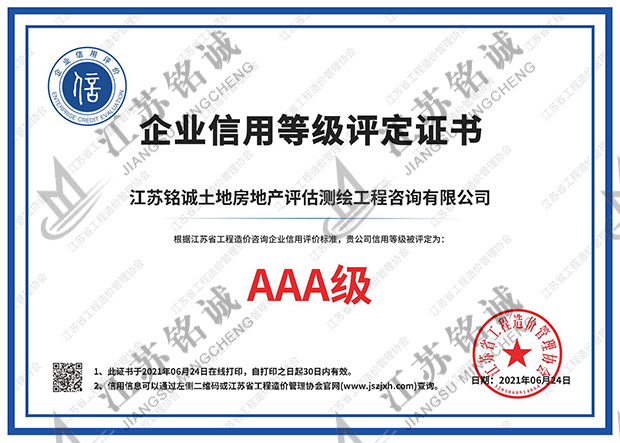 企业信用等级评定证书
