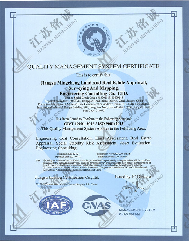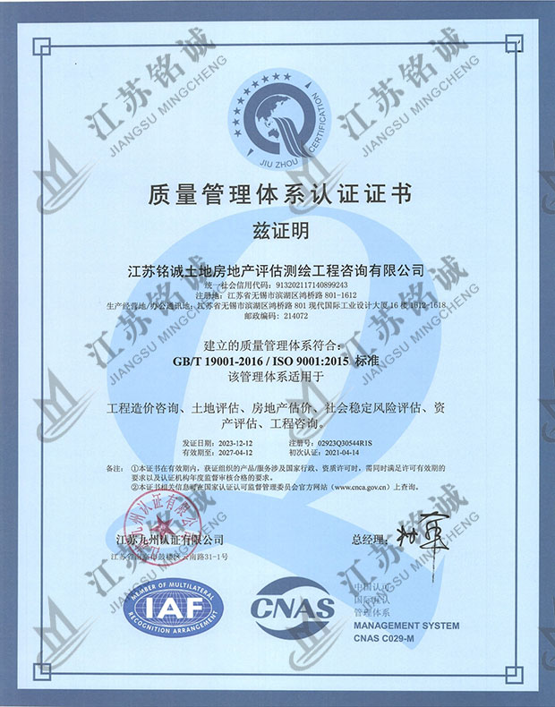 质量管理体系认证证书