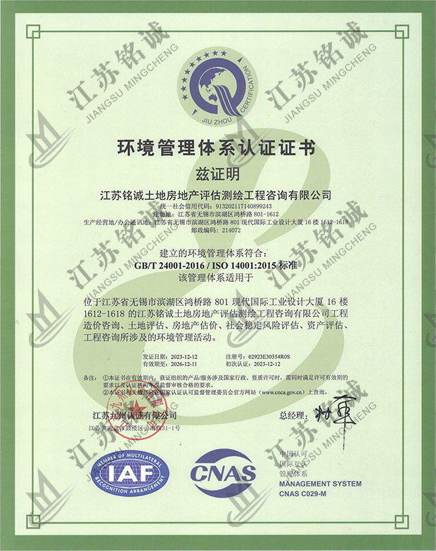 环境管理体系认证证书